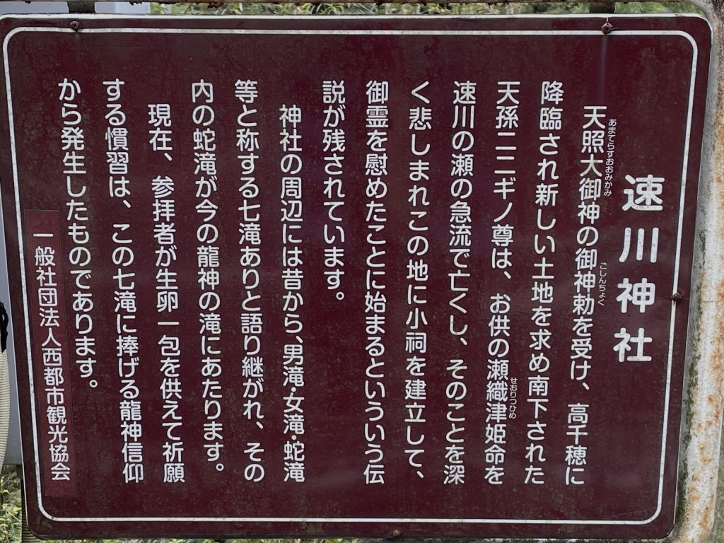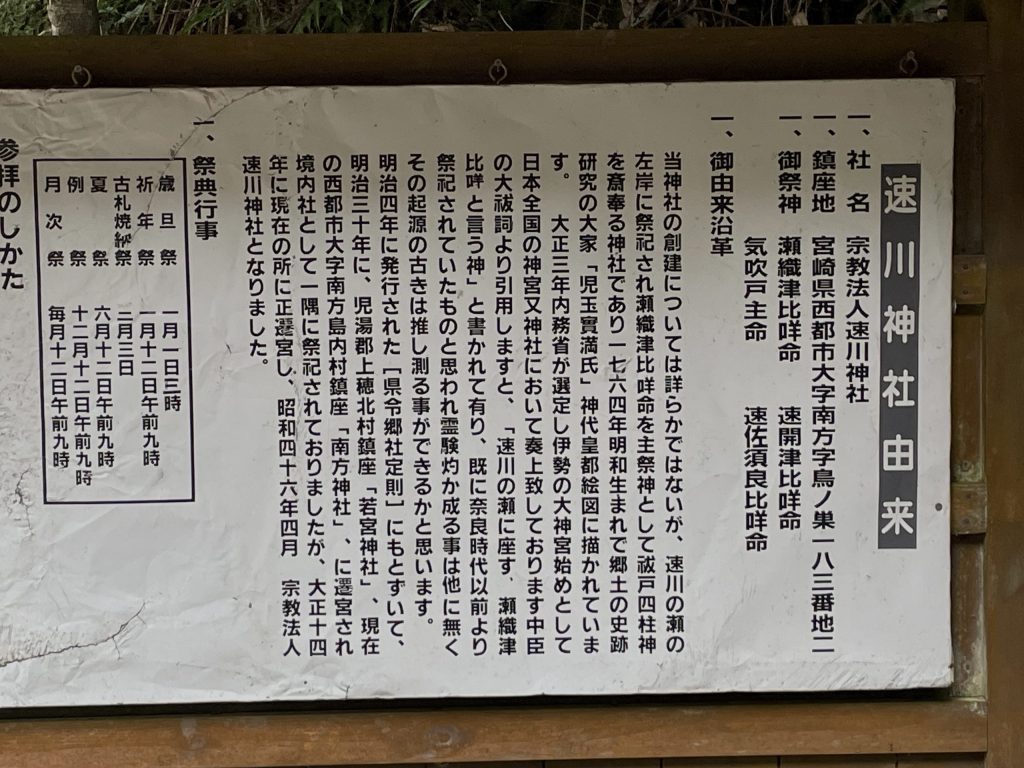 瀬織津姫神様が祀られている神社は日本全国にございますが、今回は宮崎県は西都原市に鎮座されている速川神社に伺います。